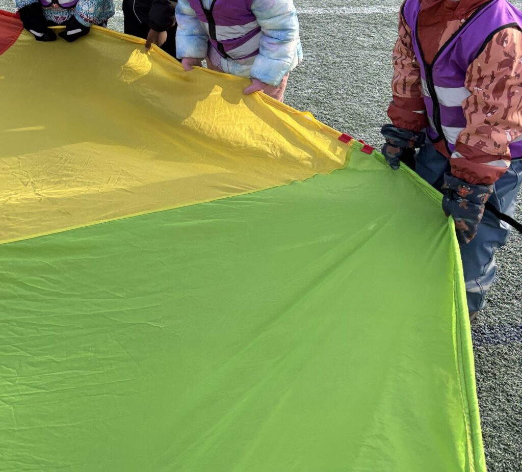 På Bolindervallen väntade tre fartfyllda aktiviteter, fallskärm, fotboll och stafett. Barnen samarbetade, sprang, skrattade och hejade på varandra. Färgerna dansade i vinden, bollar rullade åt alla håll och hejaropen fyllde hela planen. Dagen avslutades med varm korv, saft och samtal om vad som varit roligast, något många hade svårt att välja.