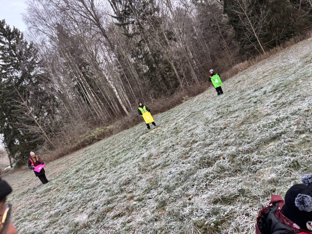 Vid Ankdammen inleddes friluftsdagen med dans och rörelse till glada sånger. Sedan följde aktiviteter i rotation: “Kom alla mina kycklingar”, Färgspring och Pinnrace. Barnen sprang, hoppade, imiterade djur och utforskade rörelse på lekfulla sätt. Efter aktiviteterna samlades grupperna för att äta frukt tillsammans innan promenaden tillbaka till förskolan.