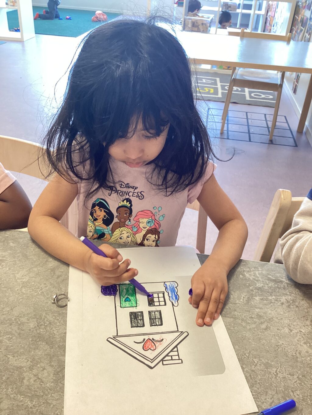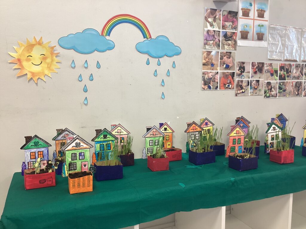 Med fantasi och engagemang ritade barnen sina egna hus, som senare fick nytt liv i form av odlingslådor. Genom att återanvända tomma mjölkkartonger som målades och dekorerades, skapades små personliga odlingshus. Valet av återvunnet material var en medveten del av förskolans hållbarhetstänk, och barnen visade stor stolthet över sina individuella skapelser.