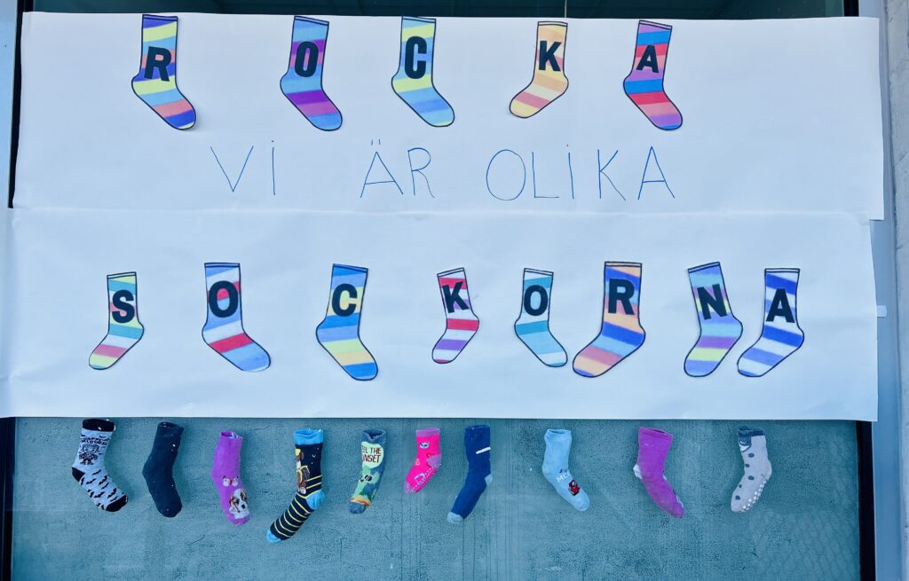 Rocka sockorna uppmärksammas den 21 mars i samband med internationella Downs syndrom-dagen. Genom att bära olika strumpor lyfts att alla människor är olika och att alla har samma värde. Läs mer om Rocka sockorna här.