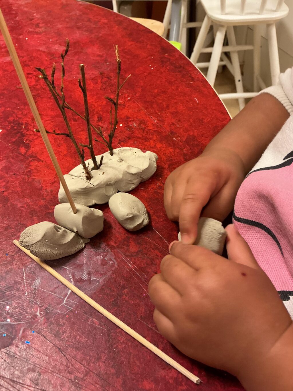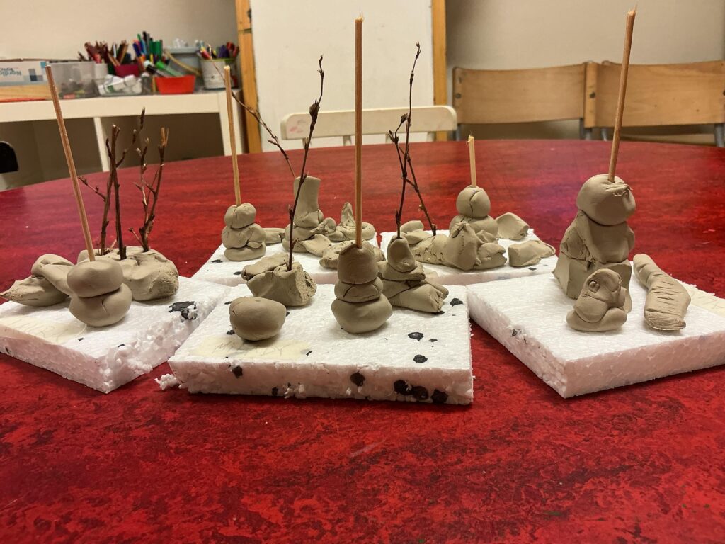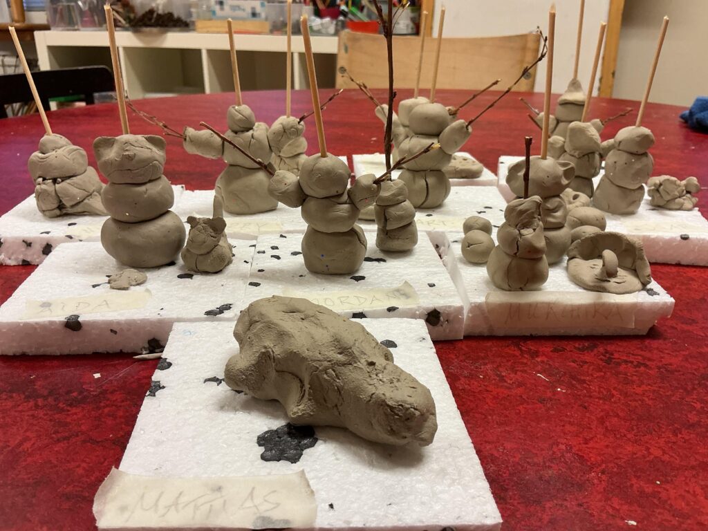 I skapandet arbetade barnen med lera och formade snögubbar, snökatter, isbjörnar och snömonster. Delarna förstärktes med tunna pinnar och grenar, och figurerna fick bo på ett snöflak av frigolit för att skapa en isig miljö som kan byggas vidare på vid nästa tillfälle.
