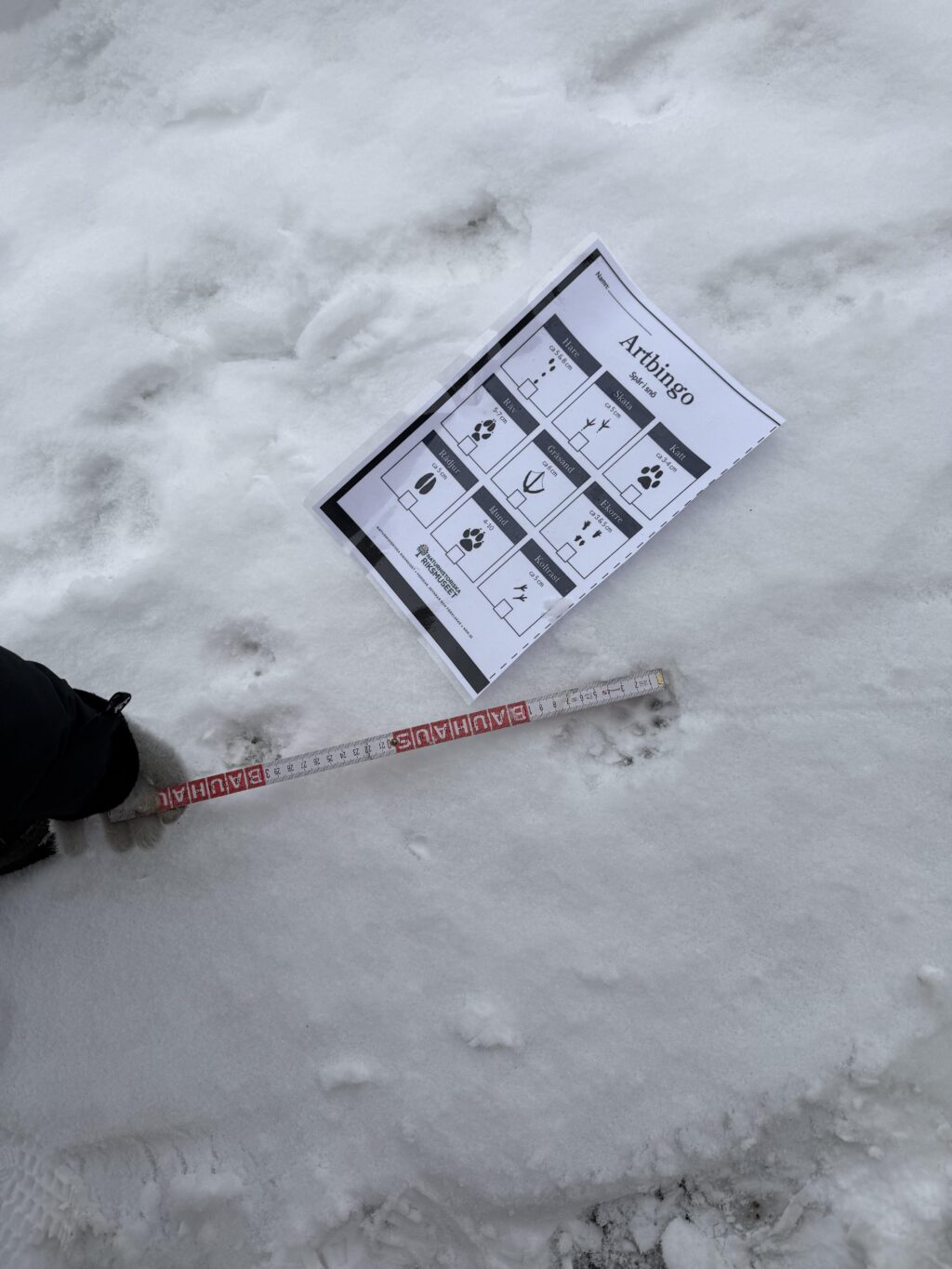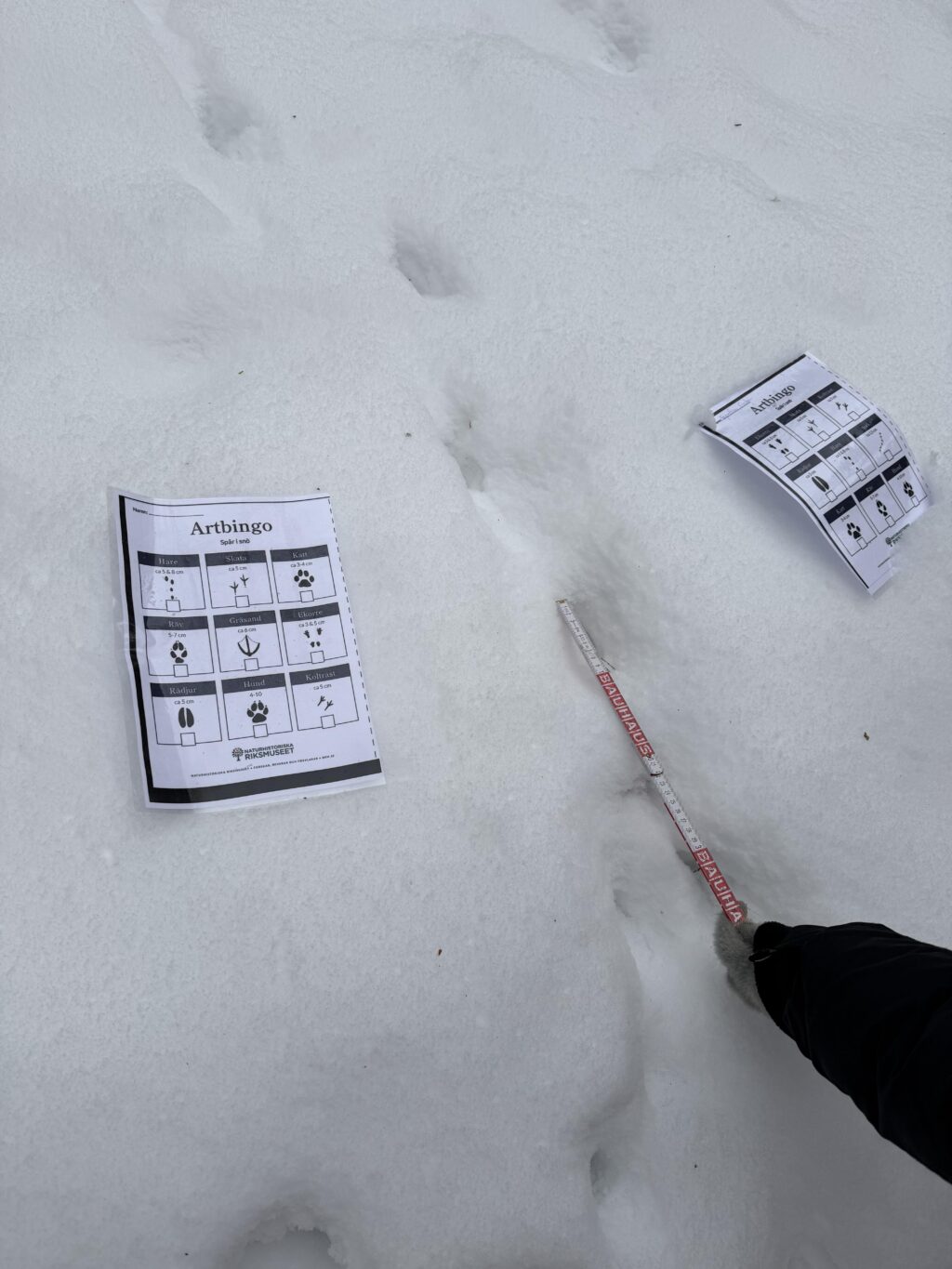 Under utflykter i närmiljön har barnen upptäckt och jämfört djurspår i snön. Med hjälp av enkla mätredskap, som linjal, har de undersökt skillnader i spårens storlek och samtalat om vilka djur som kan ha lämnat dem.