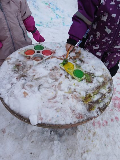 Vårterminen har tagit sin början på Förskolan Tibble i Kungsängen med vintriga dagar som bjudit in till både lek och lärande. Snön har blivit en naturlig del av verksamheten och använts i utforskande aktiviteter både inomhus och utomhus. Barnen har bland annat fått måla i snön, där färger och former skapat härliga mönster och gett utrymme för kreativt skapande. Snömålningen har samtidigt blivit ett sätt att utforska material, färg och förändring, där barnen visat stort engagemang och skaparglädje.